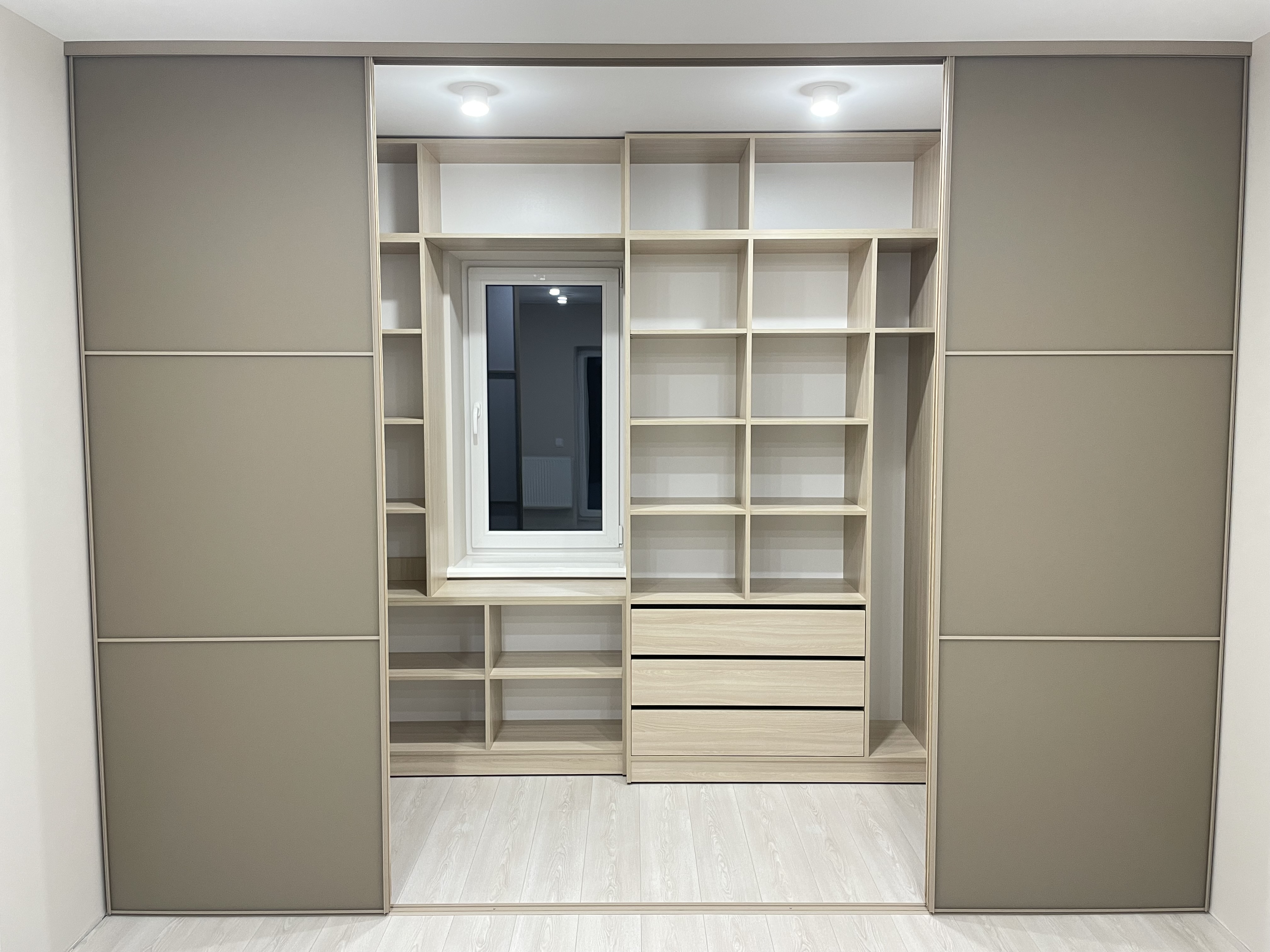 Фасад: RAL 1019 на склі сатин